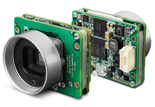 The FLIR Chameleon3 USB3 board level camera in front and rear views.